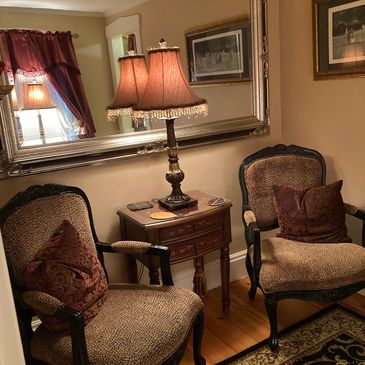 Our guests can enjoy their own Victorian parlor, complete with wood stove.